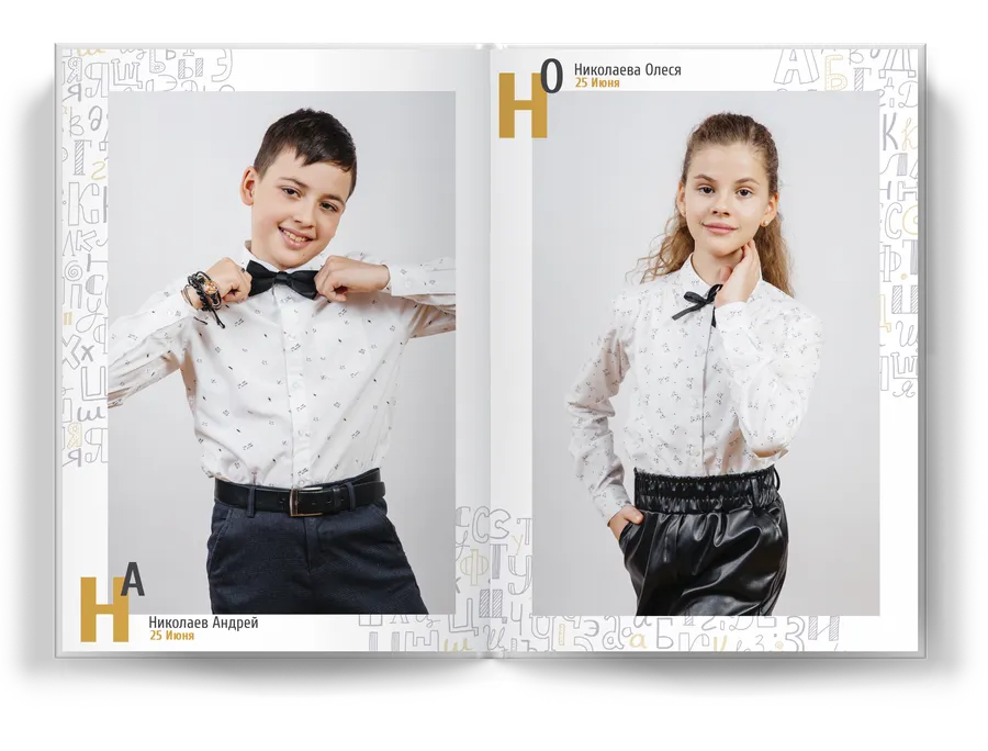 Выпускной альбом 4 класса «Алфавит» — прекрасная разработка наших мастеров. Это великолепная идея сохранения важных моментов жизни ученика начальной школы. Мы всегда работаем с персональным подходом и создаем выпускные фотокниги с акцентом на каждого юного героя. Двух одинаковых альбомов в вашем классе не будет! Только уникальные и только живые, настоящие эмоции.