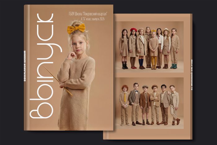 Frame — стильный выпускной альбом для 4 класса: живые портреты и групповые кадры, лаконичный дизайн в стиле модного журнала, премиальная печать и память о школьных моментах на годы.