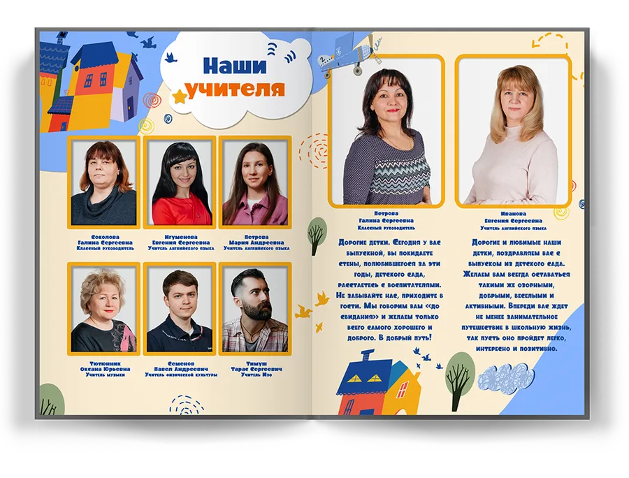Наш выпускной альбом - это настоящий творческий и увлекательный проект, созданный с любовью и заботой о каждом ребенке и их семьях. Мы надеемся, что каждое семейство найдет в нем волшебные мгновения и открытия, которые они смогут сохранить и пережить снова и снова.