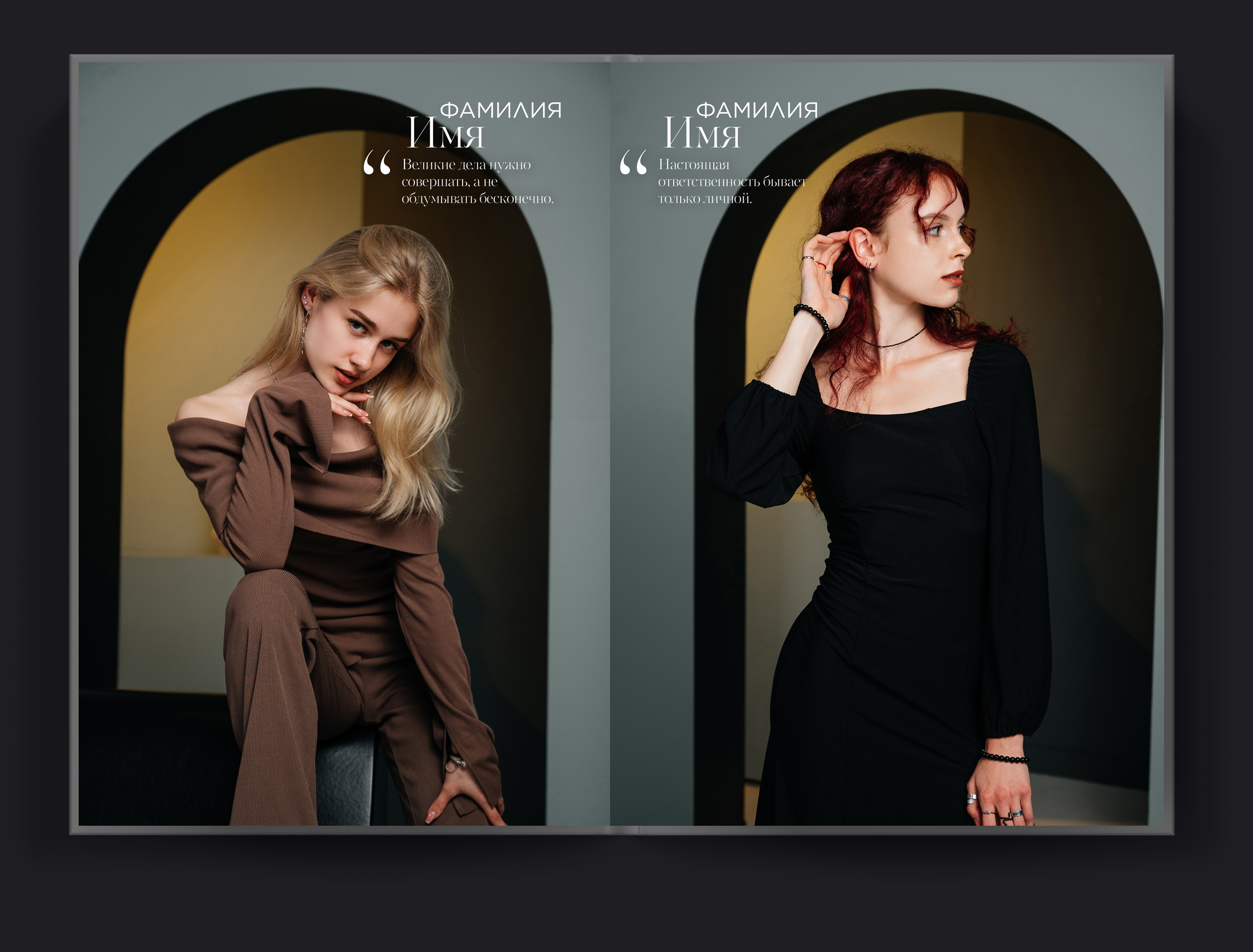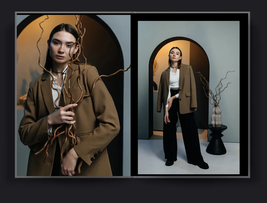 В альбоме Minimal каждая страница — это пример совершенного баланса. Минималистичные композиции, изящные портреты и продуманные пустоты создают ощущение воздуха и свободы. Простые формы и нейтральная цветовая гамма позволяют сосредоточиться на главном — на ваших лицах, улыбках и искренних эмоциях. Никаких отвлекающих элементов, только суть.