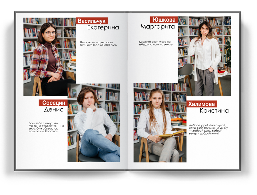Портретные фотографии выбирают выпускники и их родители. Выбор групповых фото возможен в двух вариантах.