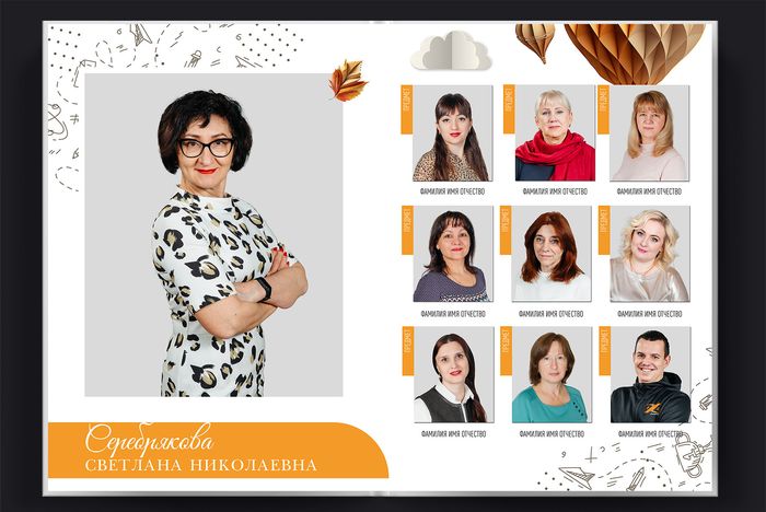 | Наполнение альбома | 2 человека на разворот (т.е 1 человек на страницу) |