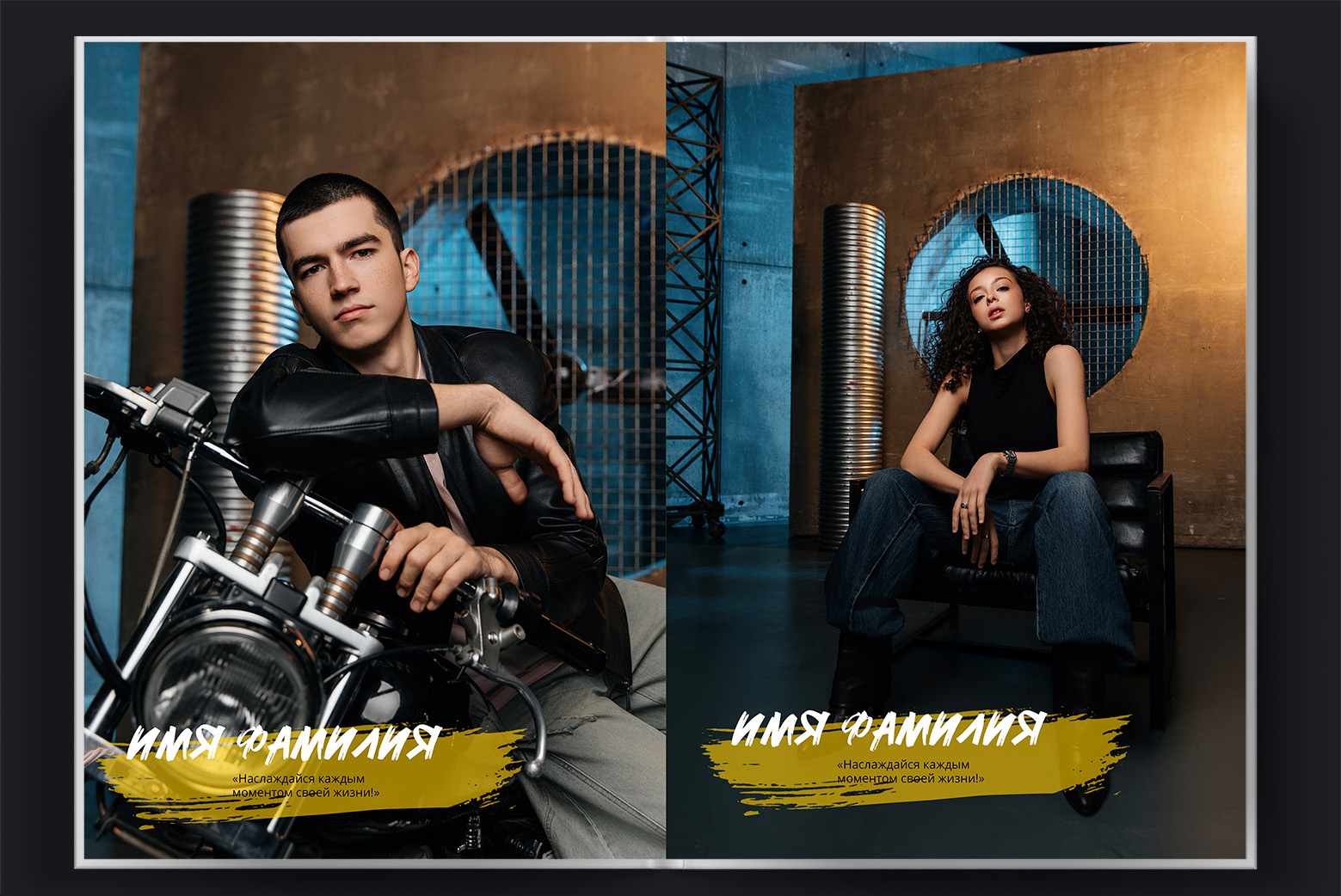 Залетай в наш мир, где каждый кадр - это отдельная история, наполненная драйвом, весельем и эмоциями. Этот выпускной альбом для 11 класса рвет шаблоны! Мы не просто фотографируем, мы создаем арт, который навсегда запомнится тебе и твоим корешам. Улови вайб крутых мест, стильного лука и неповторимого настроения!